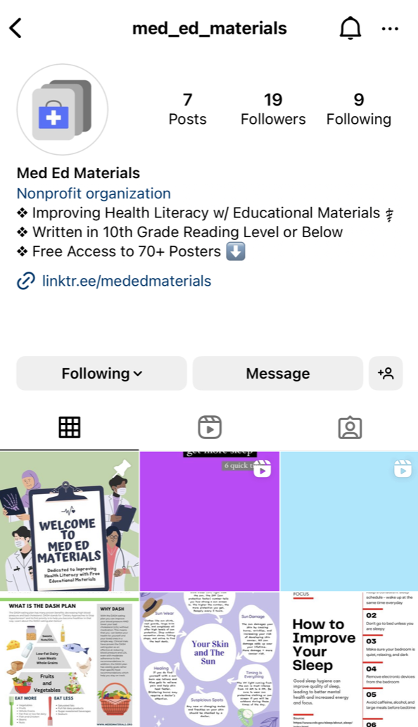 At the core of Med Ed Materials are our volunteers who follow standardized guidelines on poster creation. This ensures that posters are high quality and evidence based. Our volunteers come from various places around the country but all have the same goal in mind: to improve health literacy. Additionally, our board of directors is mostly made of healthcare professionals and works tirelessly to fulfil this goal.