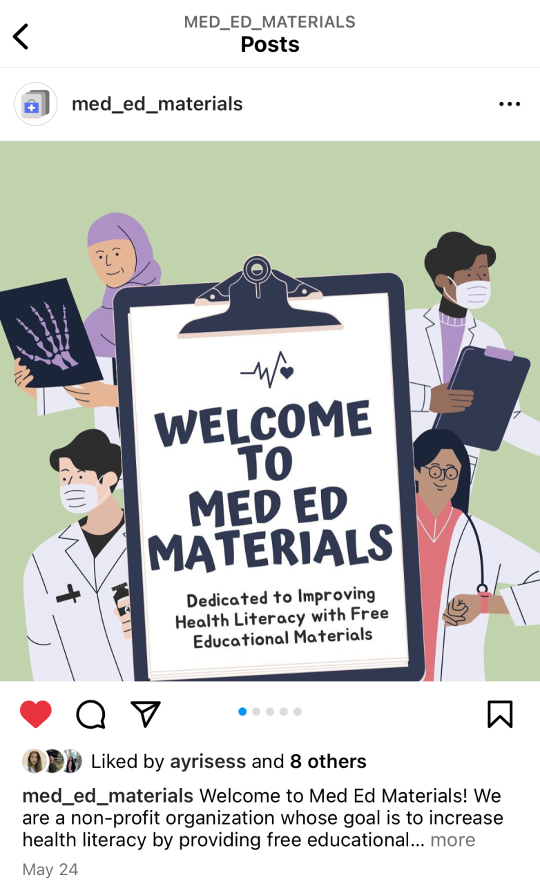 Med Ed Materials comenzó como una idea. Después de mucho trabajo duro, Med Ed Materials se convirtió en una corporación sin fines de lucro registrada 501c3 en el estado de Illinois. Hoy en día, somos un equipo pequeño dedicado a cumplir la misión mencionada anteriormente: mejorar los niveles de alfabetización en salud para poblaciones de bajos ingresos y sin seguro médico.